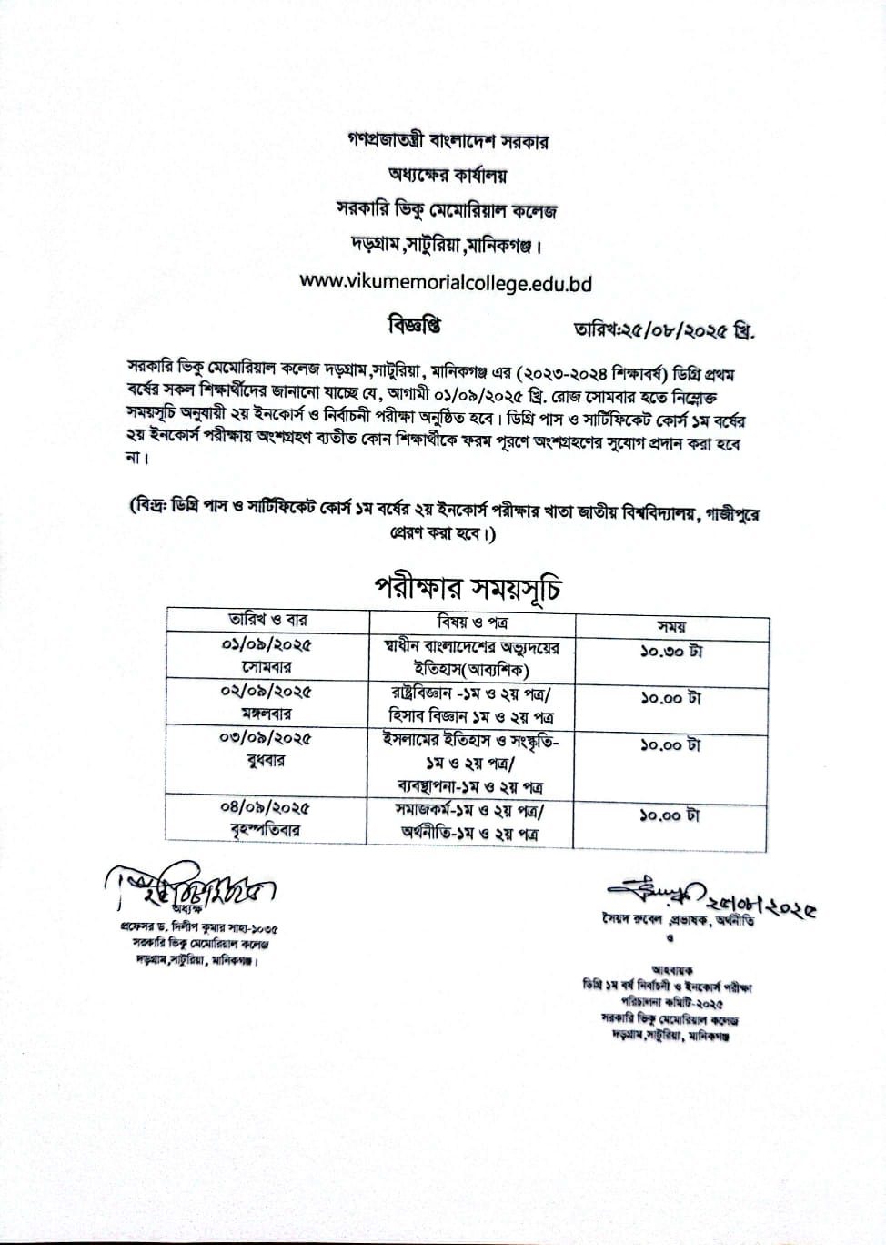 ২০২৩-২০২৪ শিক্ষাবর্ষের ডিগ্রি ১ম বর্ষের ইনকোর্স পরীক্ষার নোটিশ প্রকাশ। |