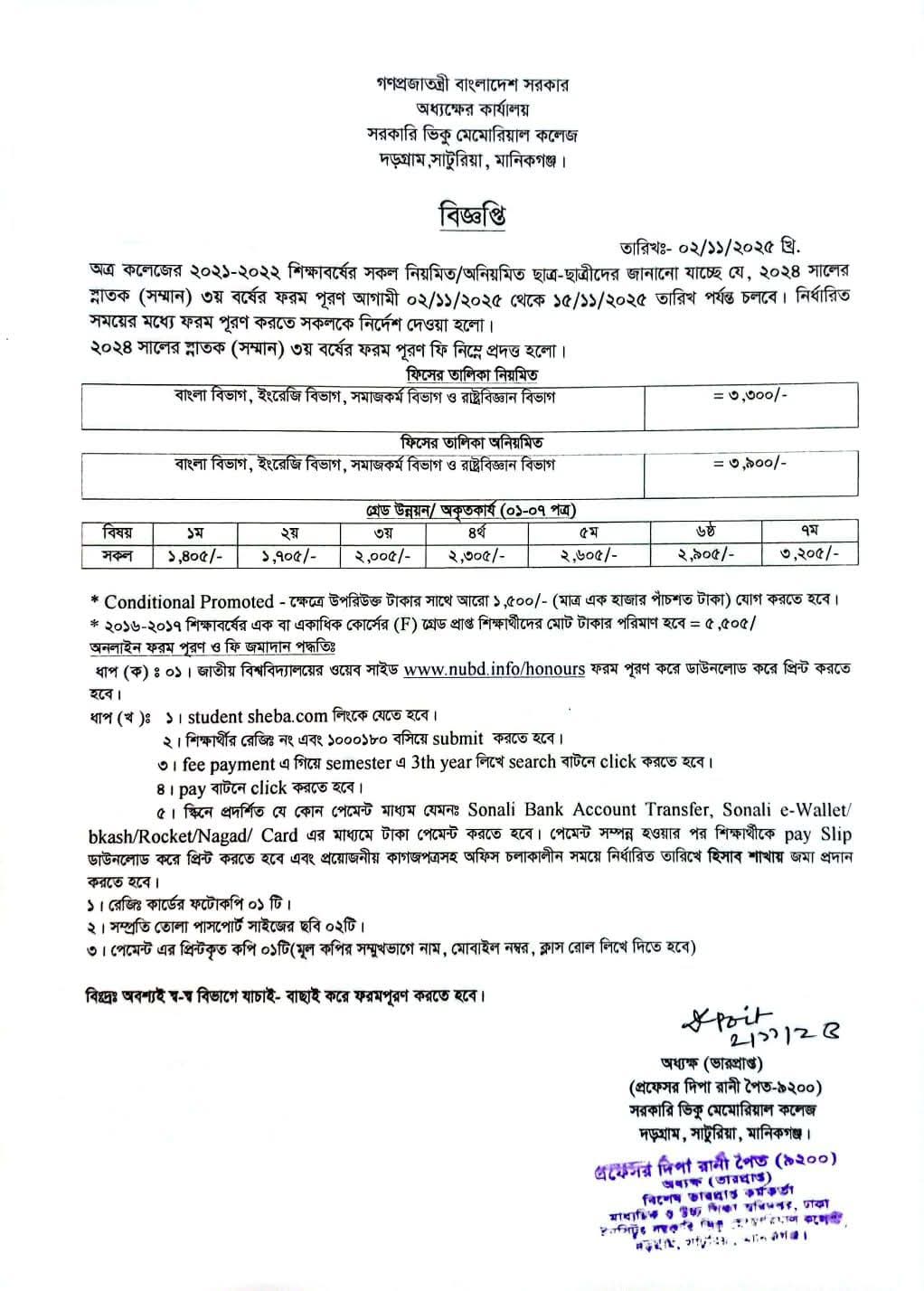 4 স্নাতক (সম্মান) ৩য় বর্ষের ফরম, পূরণের বিজ্ঞপ্তি প্রকাশ। 06/11/2025