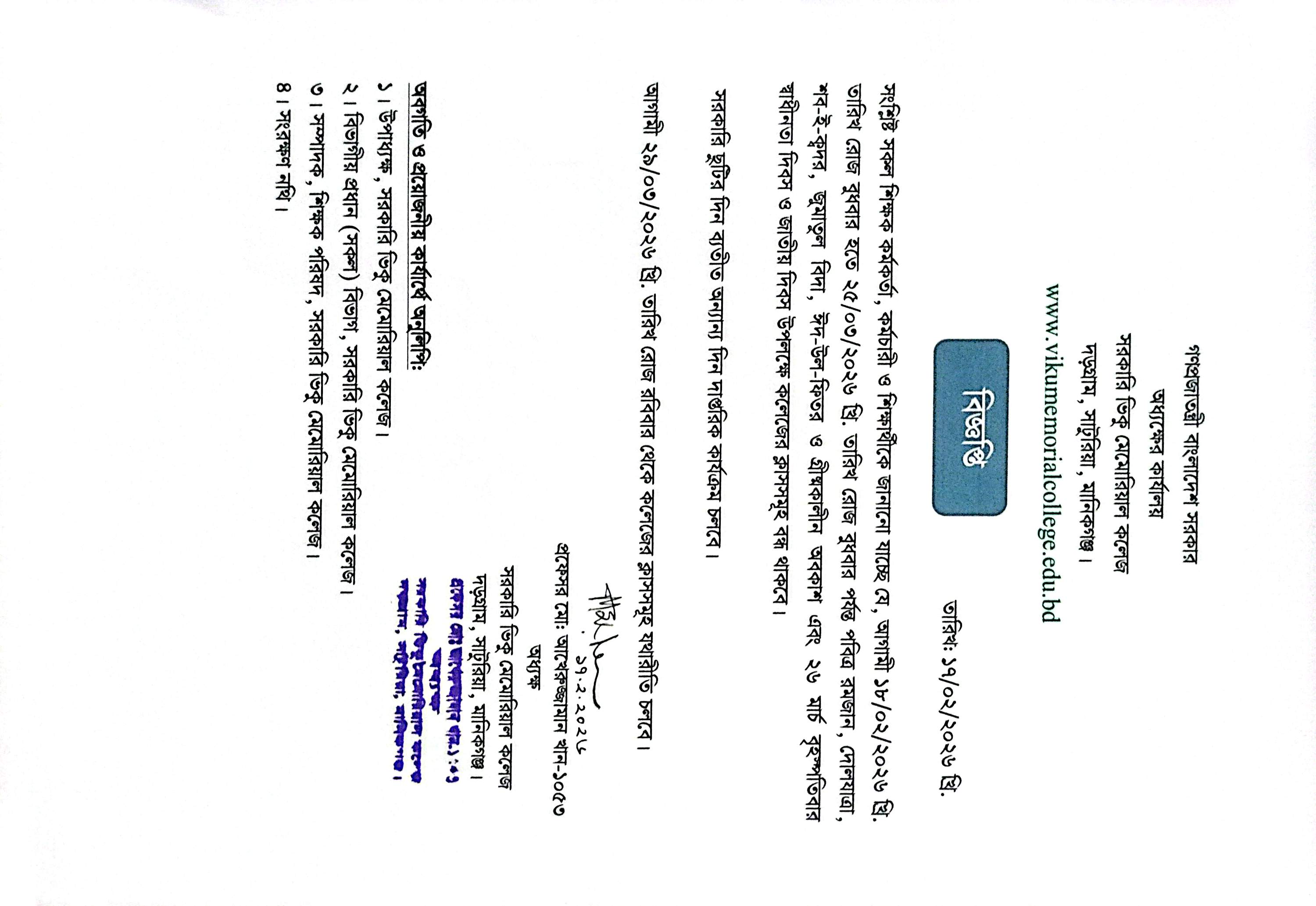 সরকারি ভিকু মেমোরিয়াল কলেজে ডিগ্রি প্রাইভেট কোর্সে ভর্তির বিজ্ঞপ্তি প্রকাশ। |